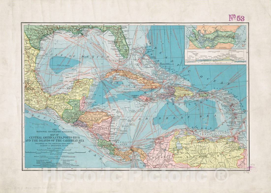 Historical Map, 1913 Map of Central America, Cuba, Porto Rico, and The Islands of The Caribbean Sea, Vintage Wall Art