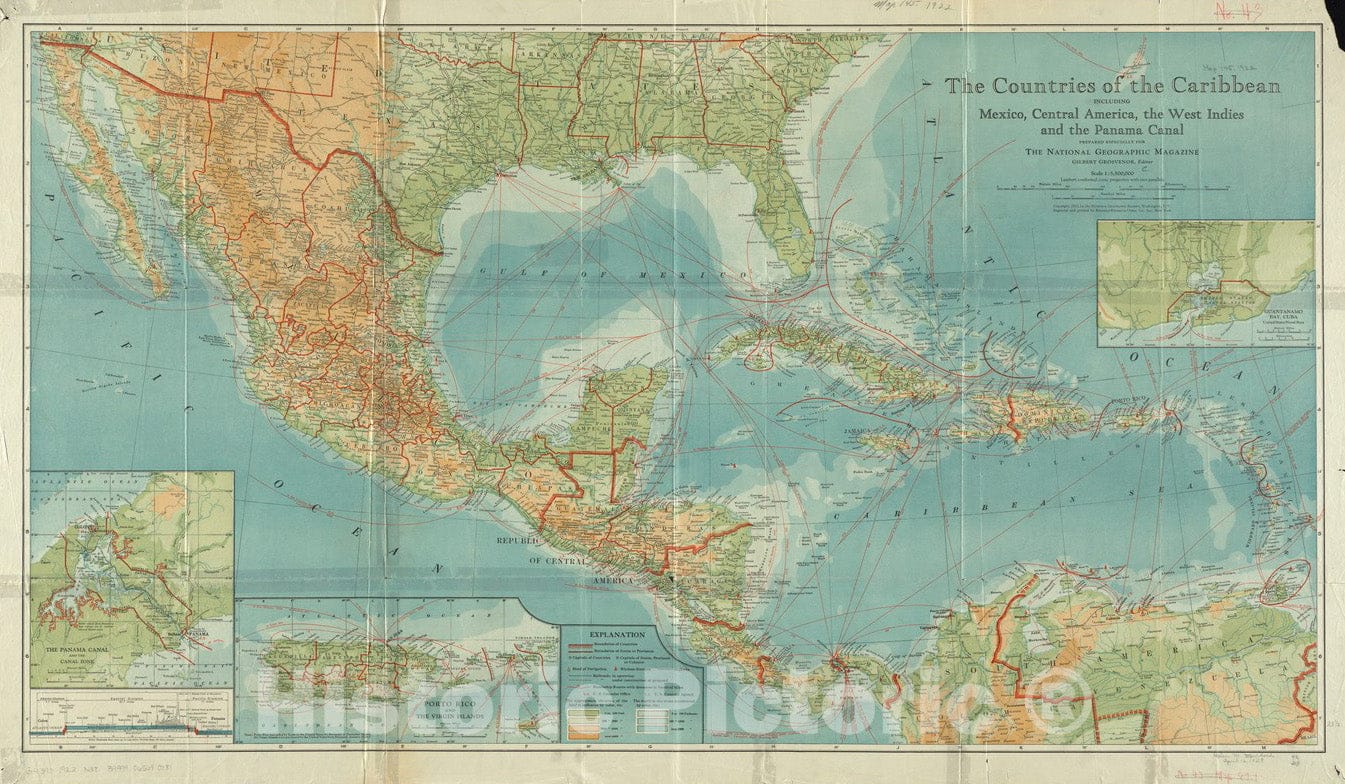 Historical Map, 1922 The Countries of The Caribbean : Including Mexico, Central America, The West Indies and The Panama Canal, Vintage Wall Art
