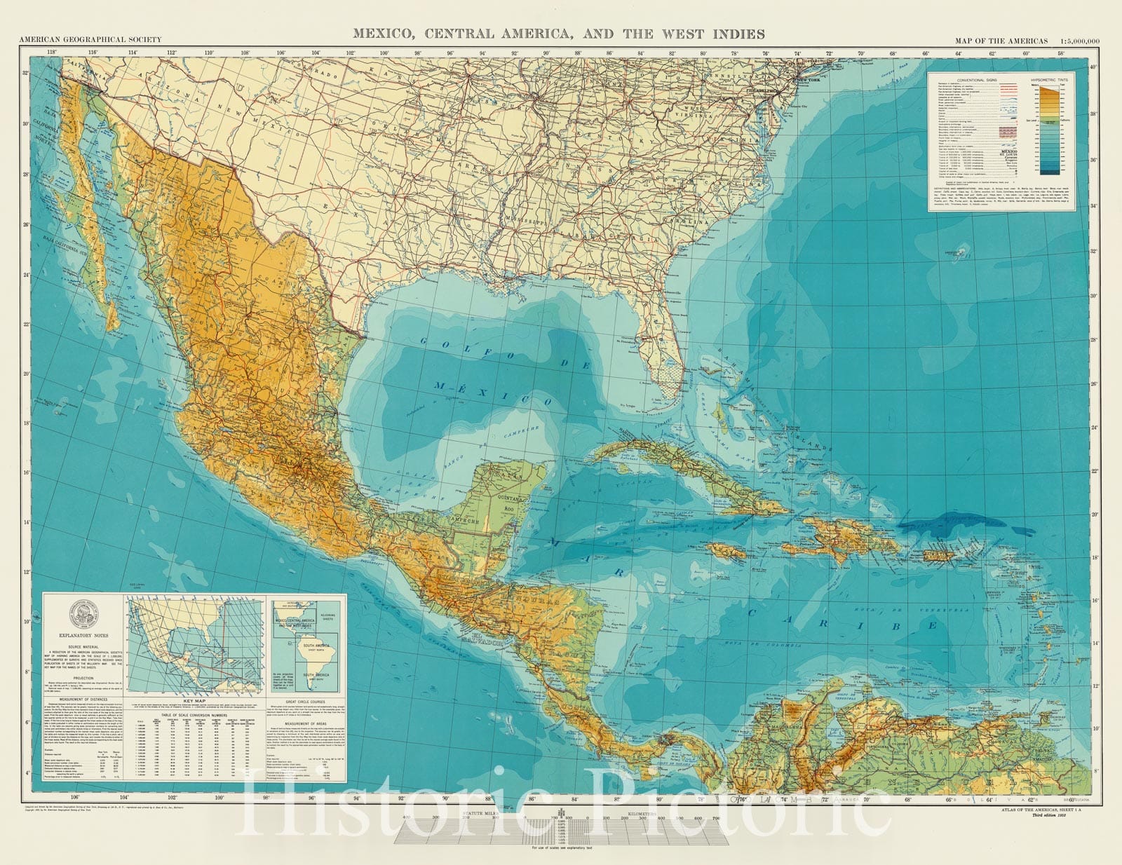 Map : Mexico and Central America 1953, Mexico, Central America, and the West Indies : map of the Americas 1:5,000,000 , Antique Vintage Reproduction