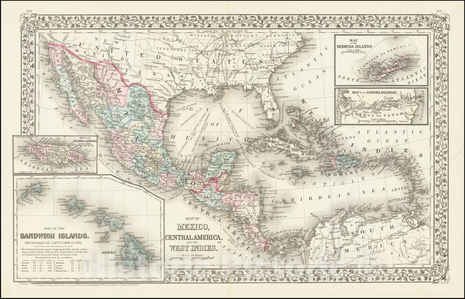 Historic Map : Mexico, Central America, and the West Indies , 1886, Vintage Wall Art
