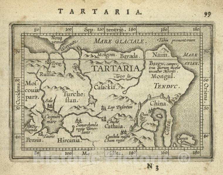 • .Historic Map - 1603 Asia, Central, Caspian Sea, Tartaria, Abraham Ortelius - Vintage Wall Art