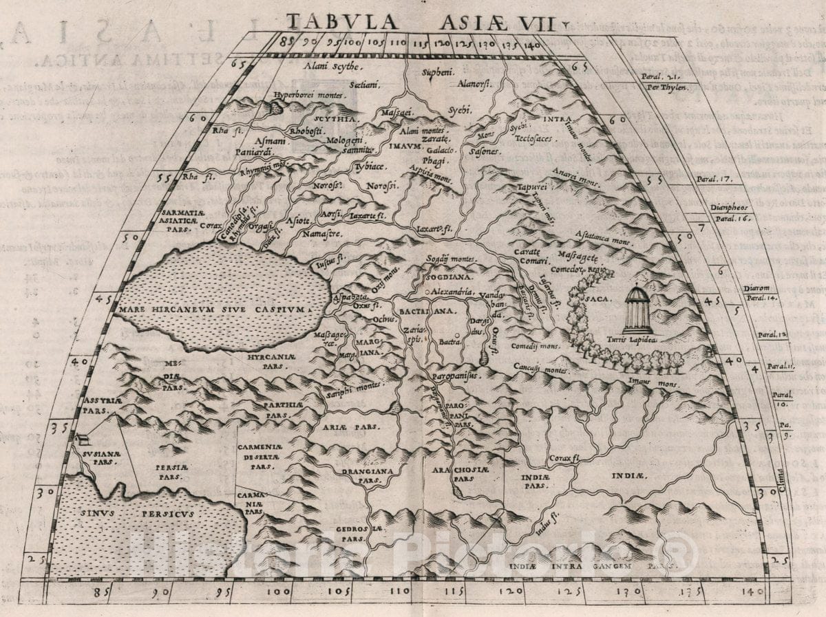 Asia, Central Tabvla Asiae VII. Dell' Asia,Tavola Settima antica. La geografia di Claudio Tolomeo Alessandrino, 1561 Atlas , Vintage Wall Art