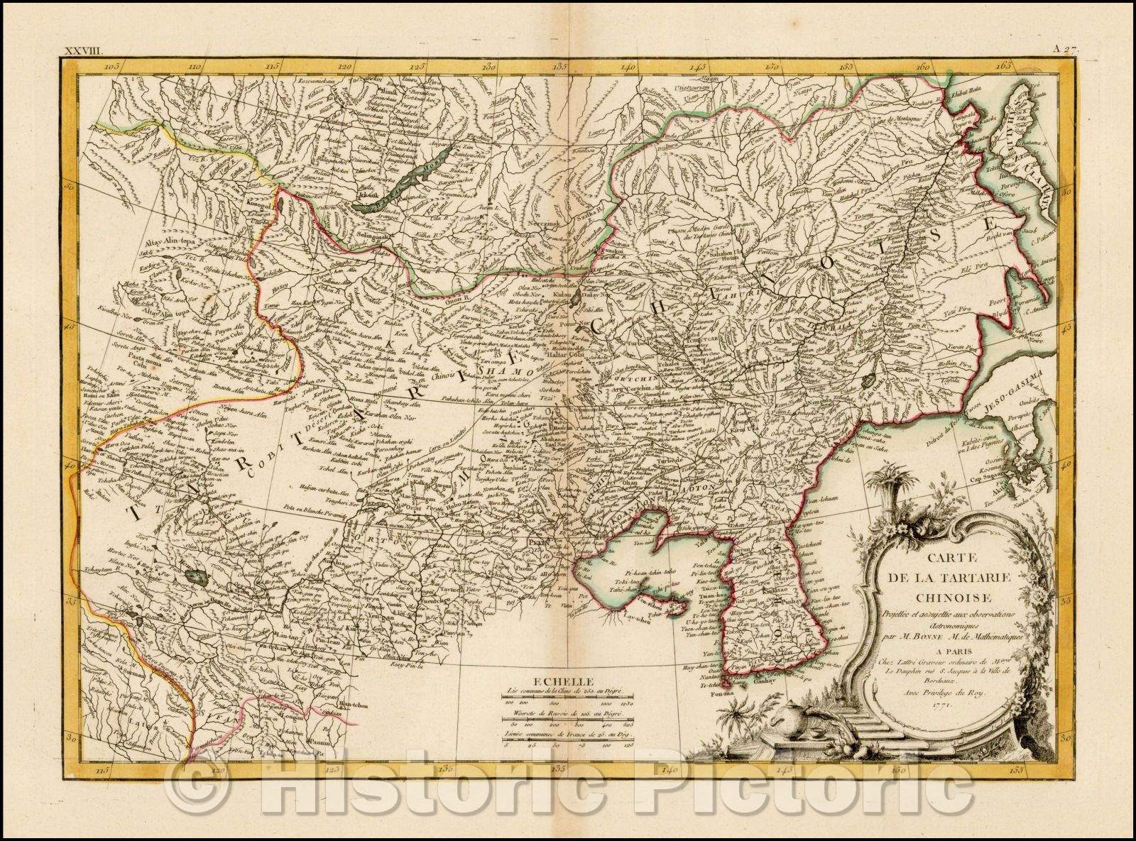 Historic Map - Carte De La Tartarie Chinois/Map of the Region bounded by Siberia and Korea in the East and Central Asia and Chinese Tartarie, 1771 - Vintage Wall Art