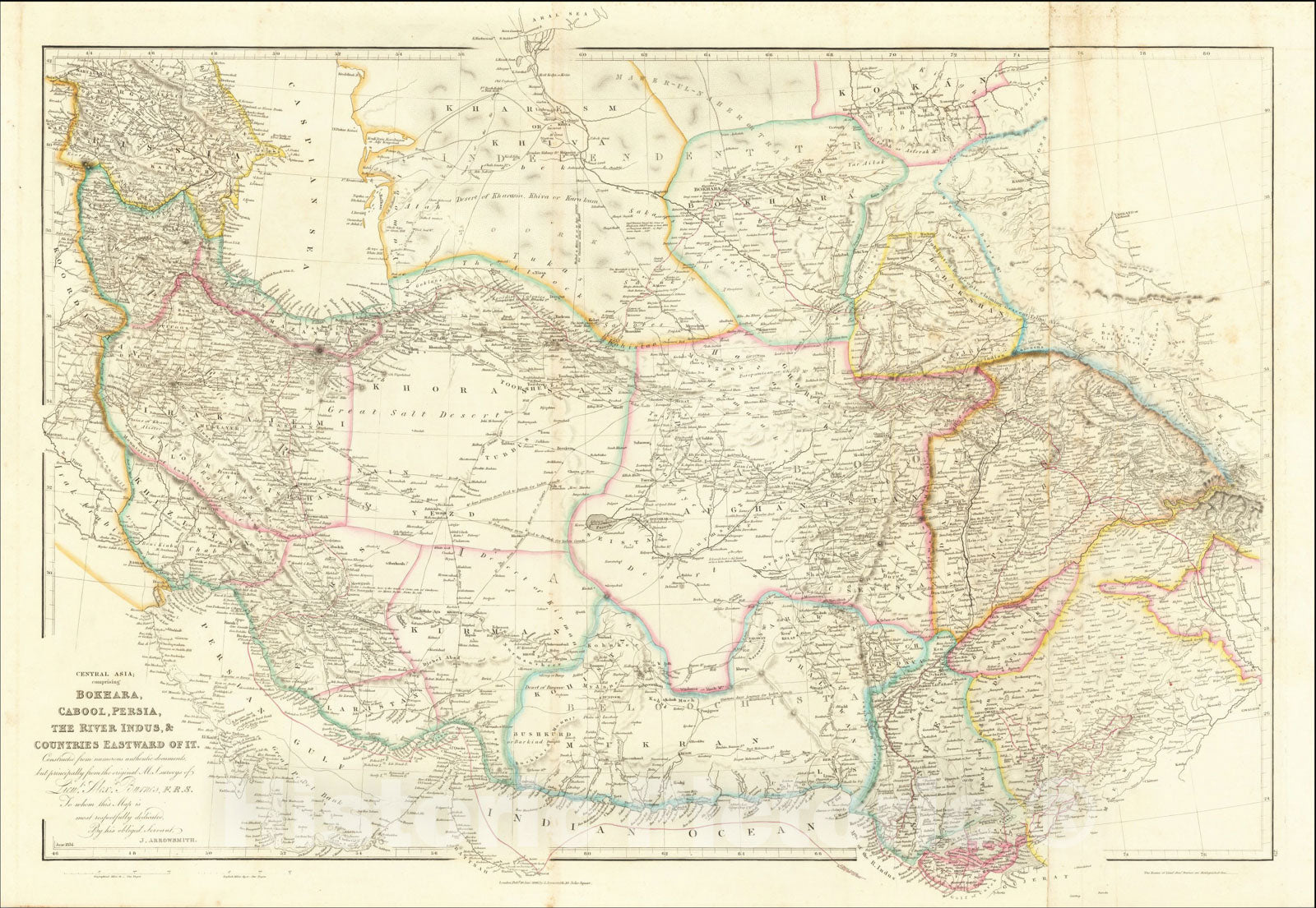 Historic Map : Central Asia; comprising Bokhara, Cabool, Persia, The River Indus, 1840, John Arrowsmith, Vintage Wall Art