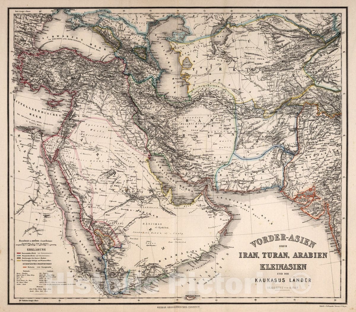 Historic Map : Iran, Central Asia Vorder-Asien Oder Iran, Turan, Arabien Kleinasien und die Kaukasus Lander, 1866 Atlas , Vintage Wall Art