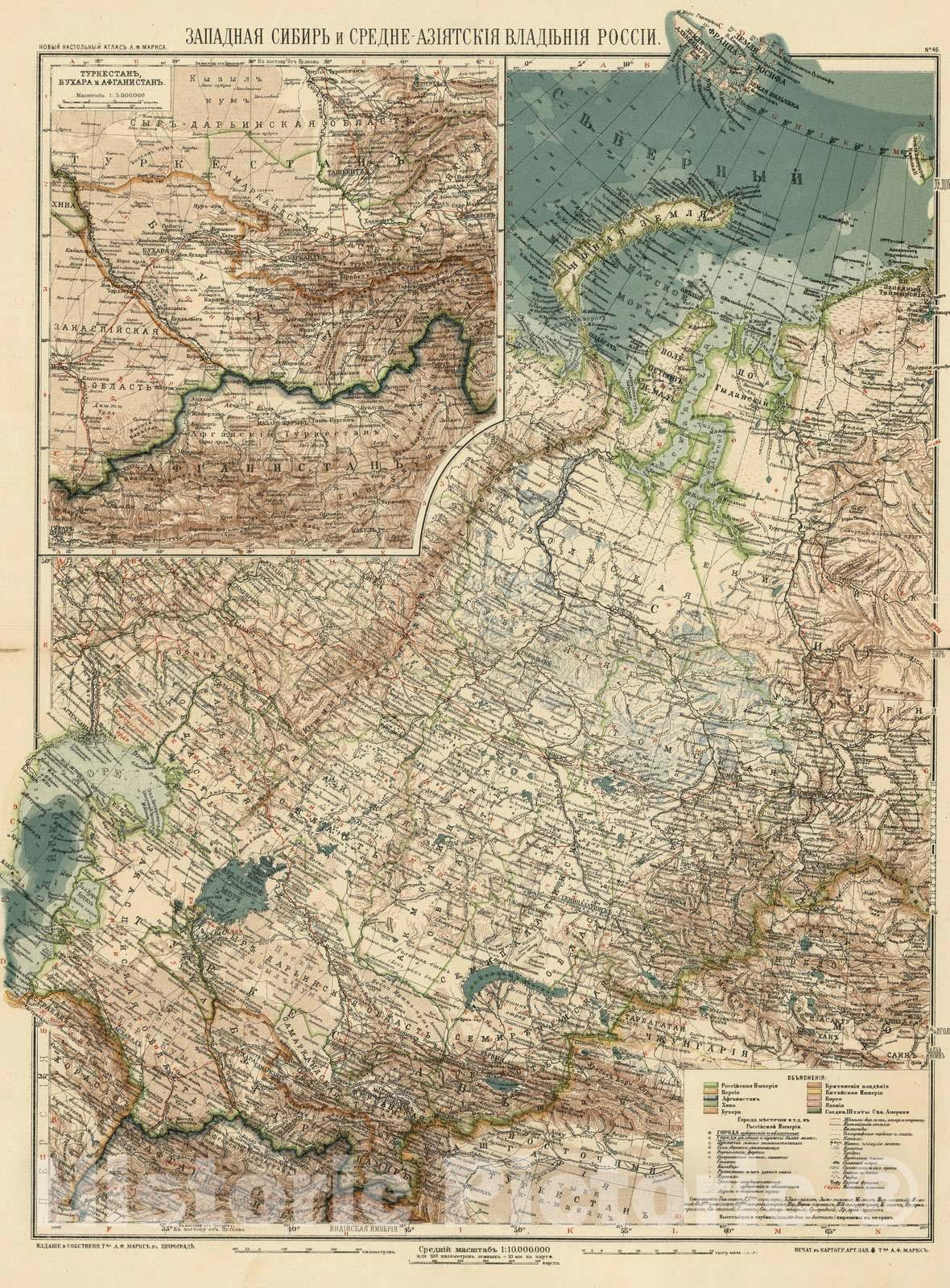 Historic Map : Russia, Asia, Central 1909 No.46. Zapadnaya Sibir i Sredne-Aziatskiia vladieniia Rossii , Vintage Wall Art