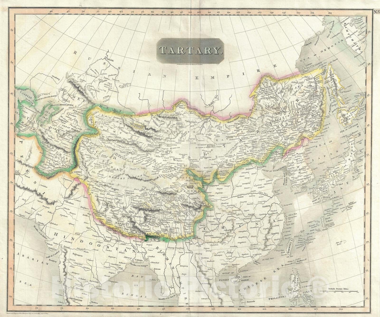 • .Historic Map : Tartary "i.e. Mongol Empire of Central and East Asia", Thomson, 1814, Vintage Wall Art