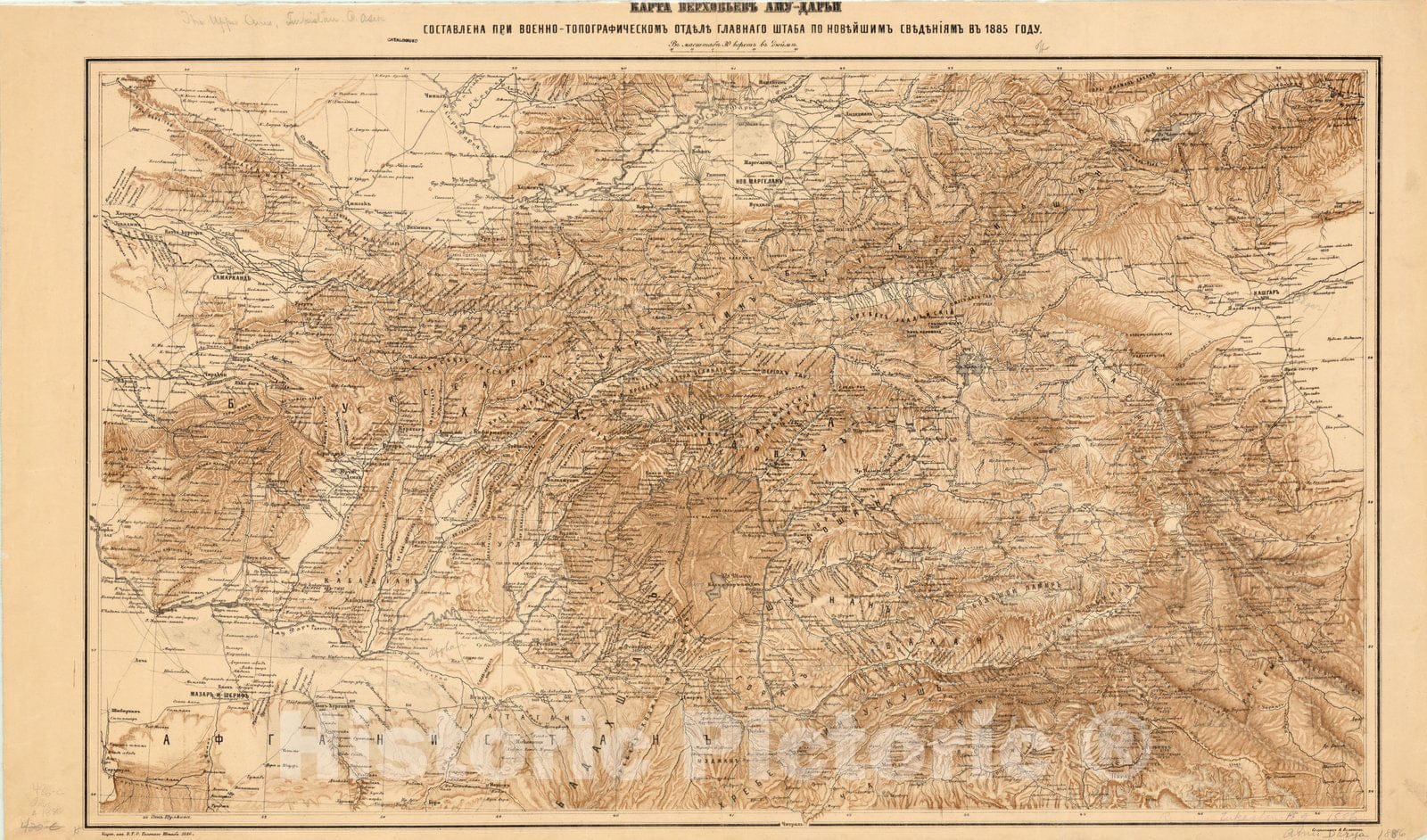 Map : Amu Darya 1886, [The Upper Oxus, Turkistan, Central Asia], Antique Vintage Reproduction