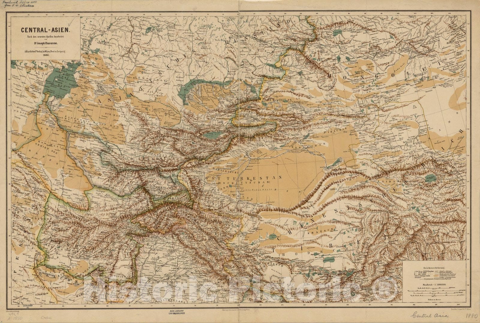 • .Map : Central Asia 1880, Central-Asien : nach den neuesten Quellen bearbeitet , Antique Vintage Reproduction
