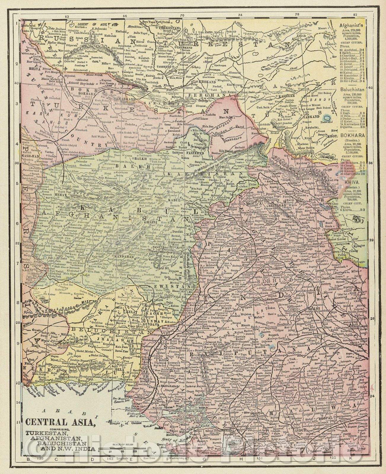 Historic Map : Central Asia comprising, Turkestan, Afghanistan, Baluchistan and N.W. India, 1900 , Vintage Wall Art