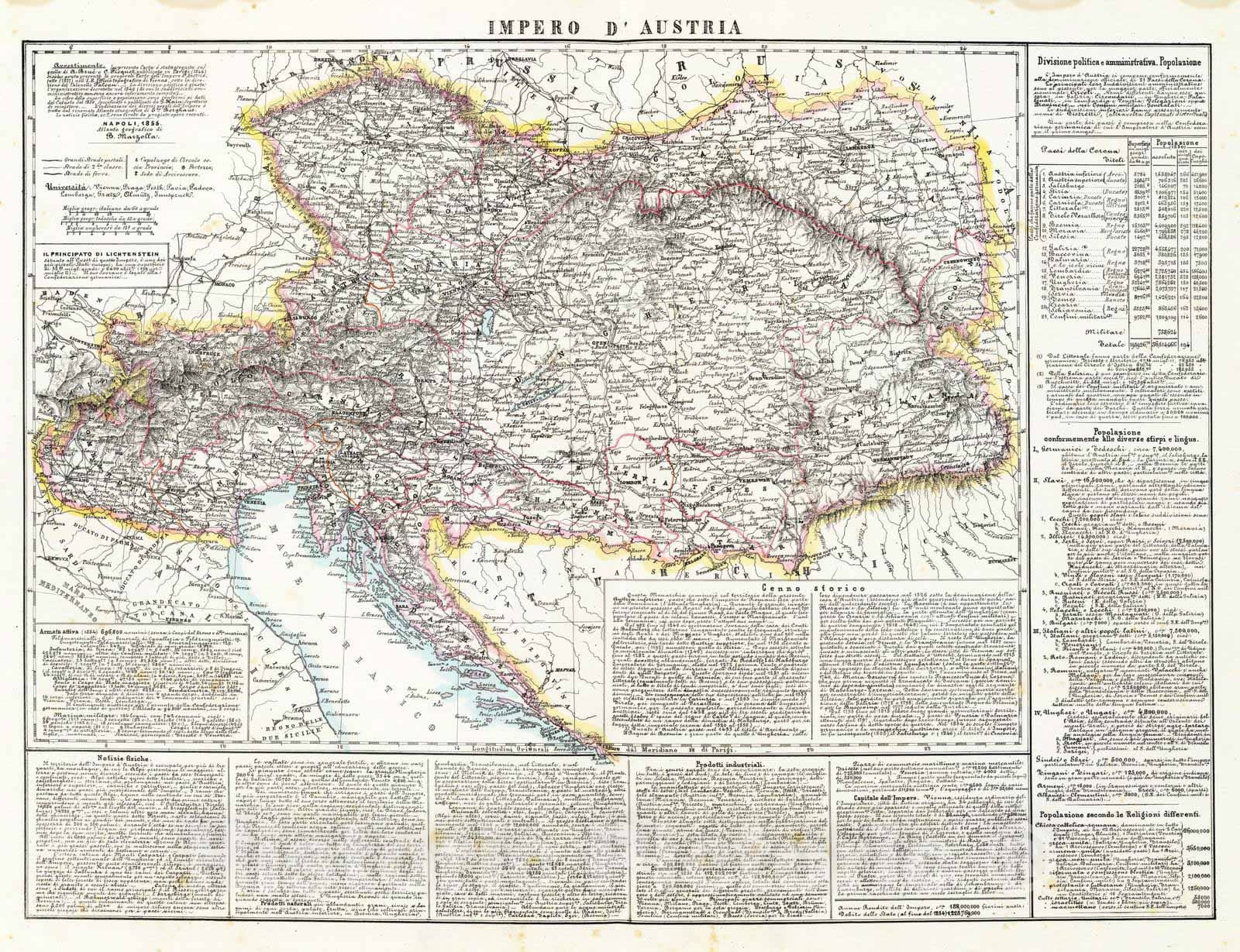Historic Map : Austria; Hungary, Europe, Central 1855 Impero d'Austria. , Vintage Wall Art