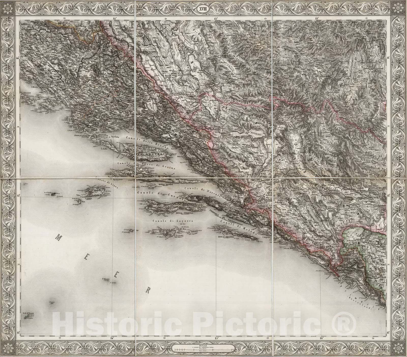 Historic Map : Bosnia and Hercegovina; Croatia; Montenegro, Central Europe Case Map, Sheet XVIII: Karte Des Oesterreichischen Kaiserstaates. 1856 , Vintage Wall Art