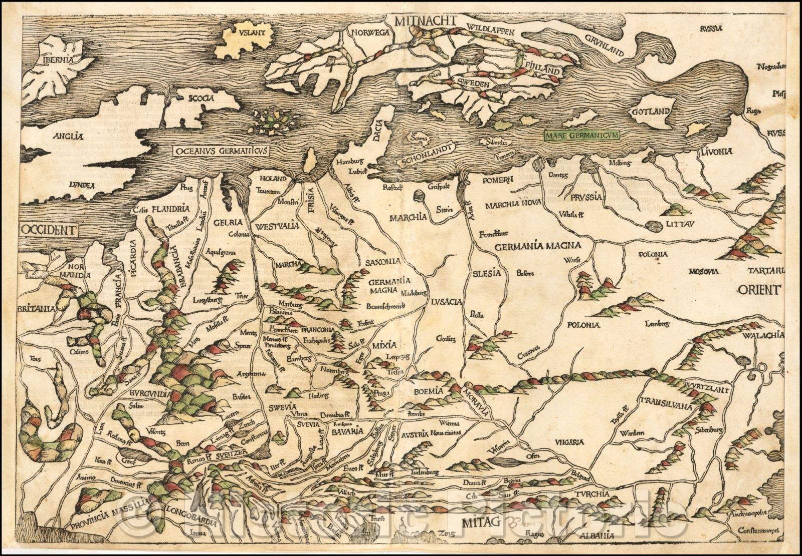 Historic Map - Central & Northern Europe, 1493, Hartmann Schedel v3