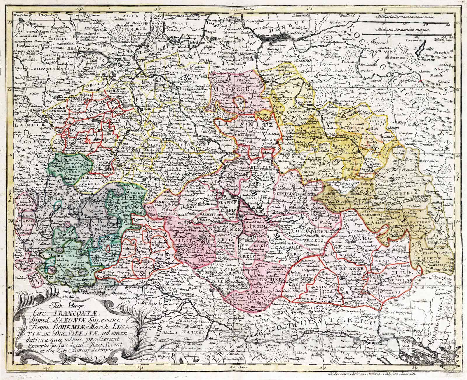 Czech Republic, Europe, Central 1753 Tab: Geogr: Circ. Franconiae Dimid. Saxoniae Superioris Regni Bohemiae