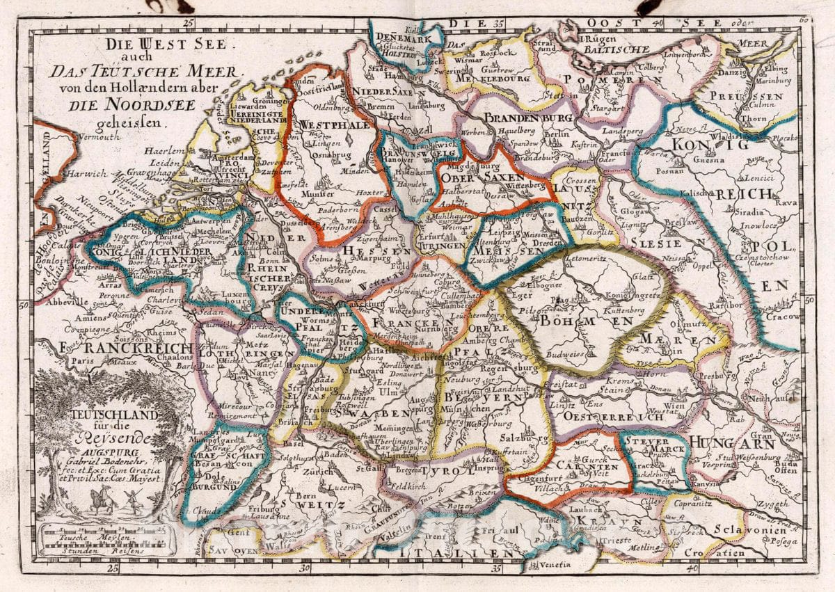 Germany, Central Europe Teutschland Fur die Reysende., 1716 Atlas , Vintage Wall Art