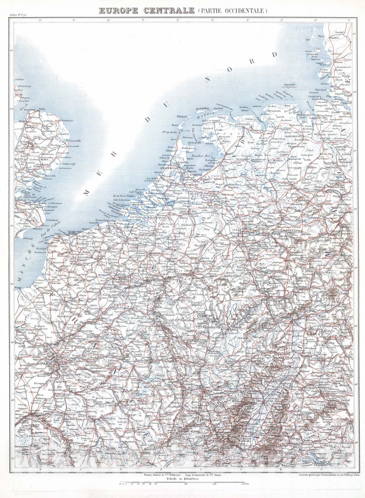 • Historic Map : Germany; Netherlands, , Europe 1882 Europe Centrale (Partie Occidentale). , Vintage Wall Art
