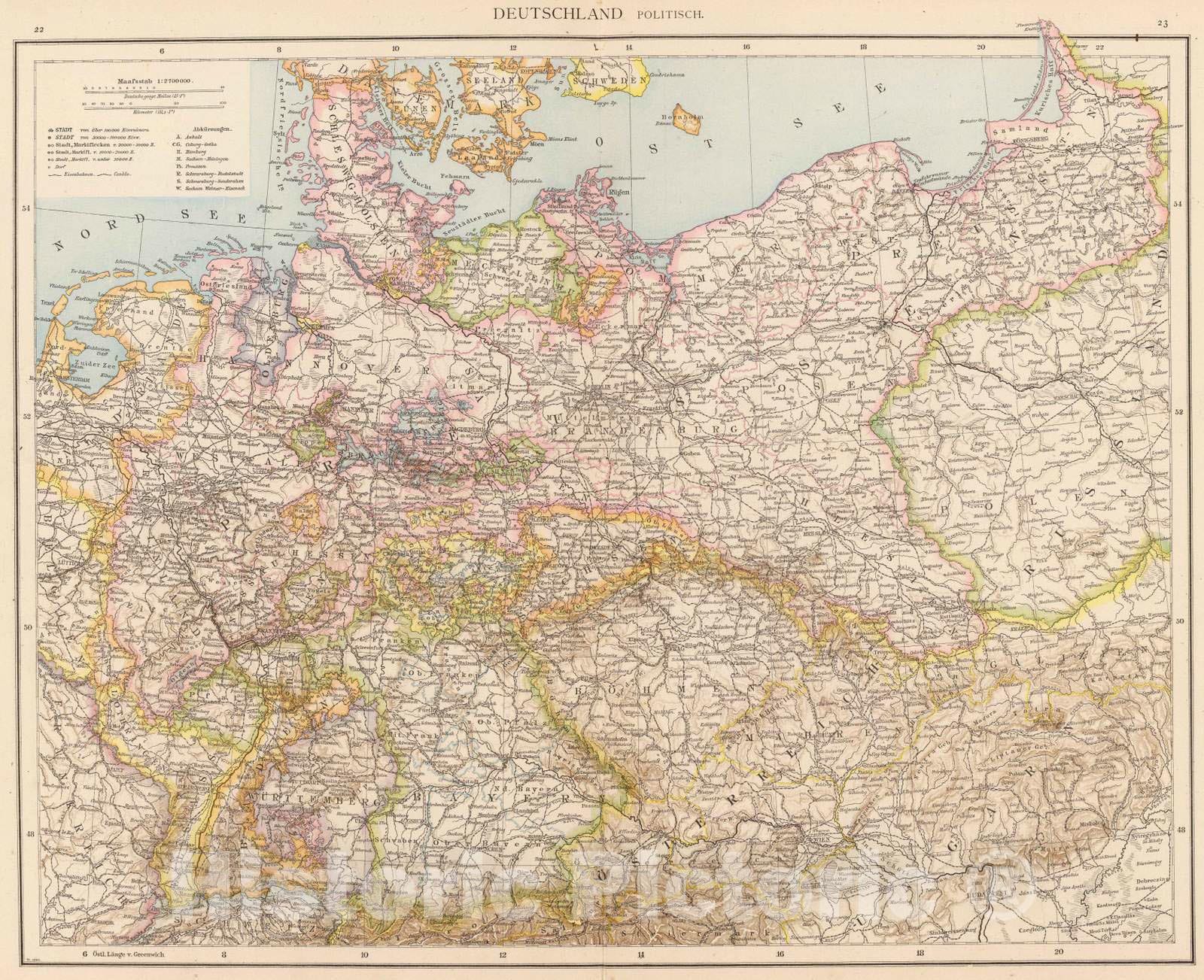 Germany; Poland, Europe, Central 1881 Deutschland politisch. , Vintage Wall Art