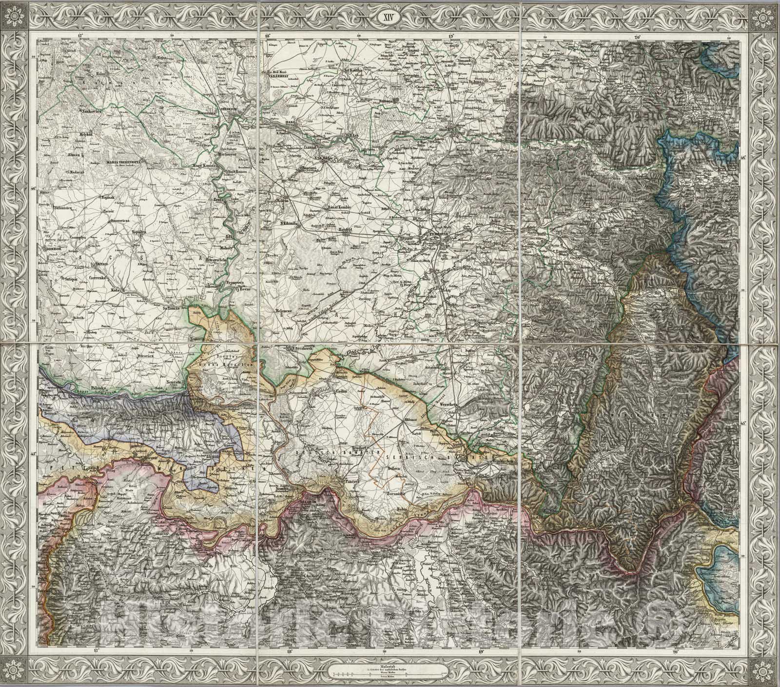 Historic Map : Romania; Serbia; Hungary, Central Europe Case Map, Sheet XIV: Karte Des Oesterreichischen Kaiserstaates. 1856 , Vintage Wall Art