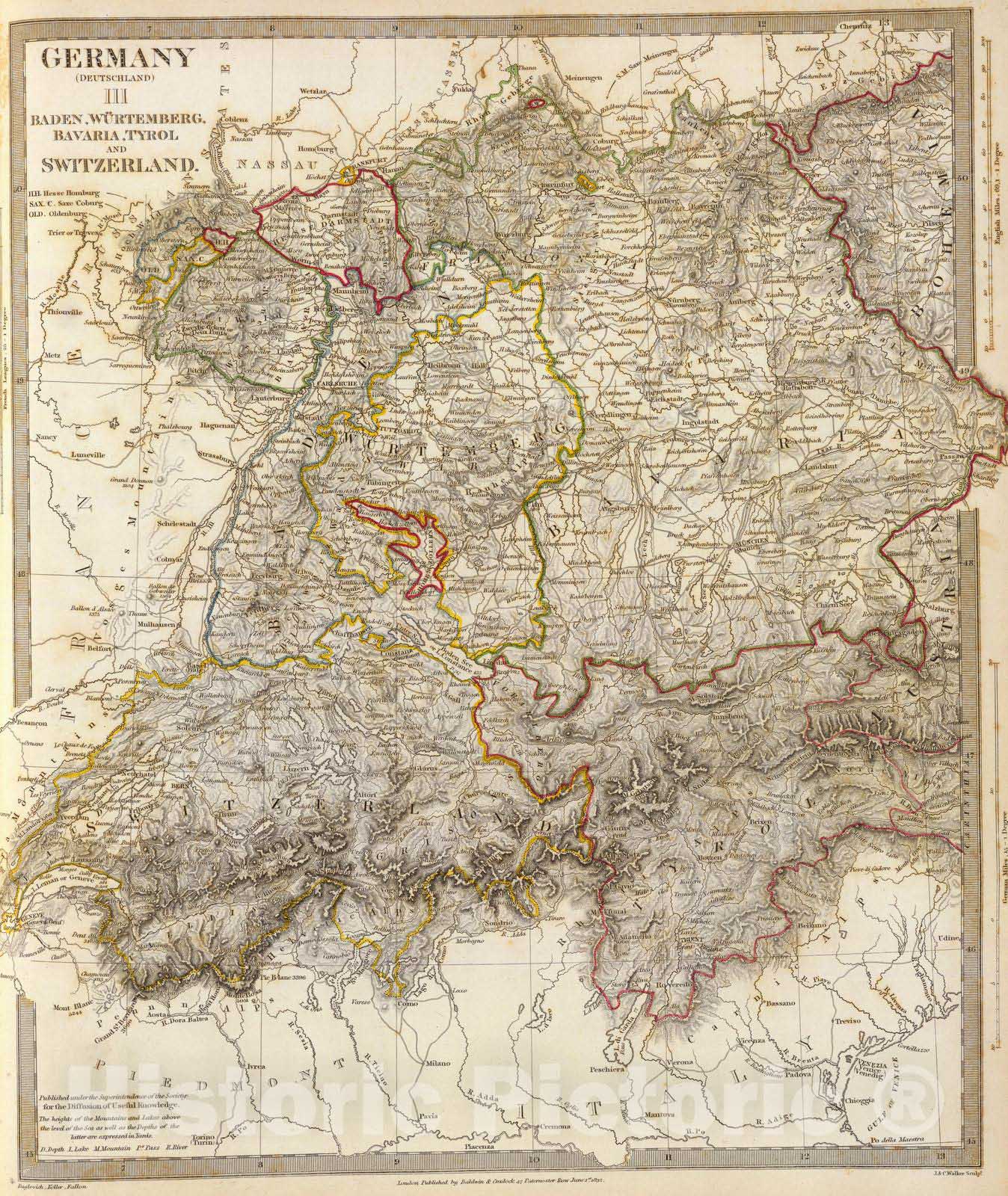 Historic Wall Map : Austria; Germany, Europe, Central 1832 Germany. Deutschland III. , Vintage Wall Art