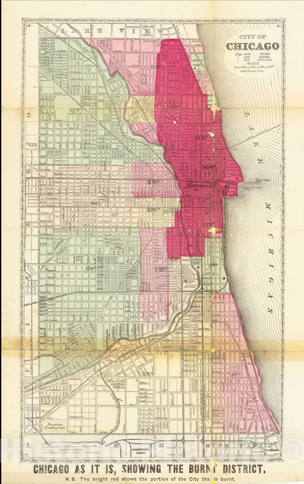 • .Historic Map : City of Chicago - Chicago as it is, Showing The Burnt District, 1871, Vintage Wall Art