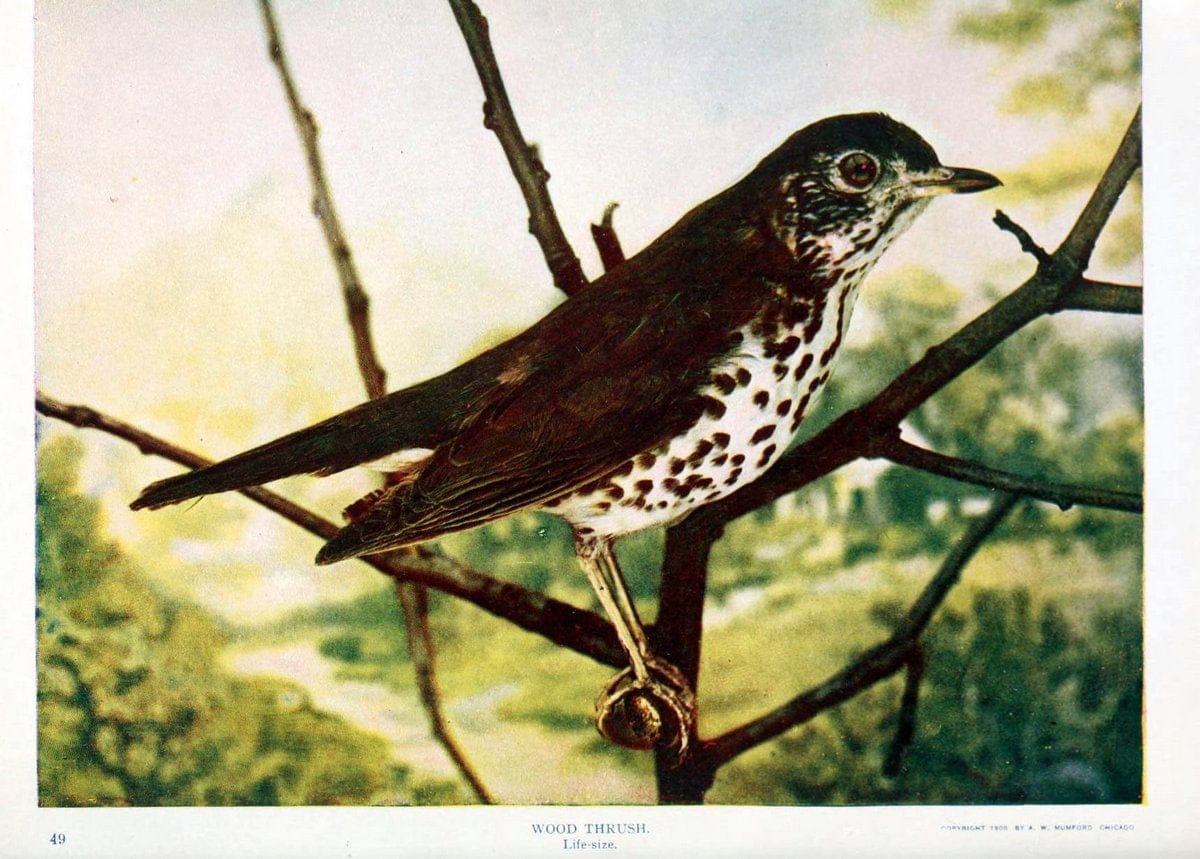 Birds and nature in natural colors. v.1.Chicago :A.W. Mumford, Publisher,1913-1914.|Birds "North America" "American Museum of Natural History Library" |taxonomy:binomial=Hylocichla mustelina |