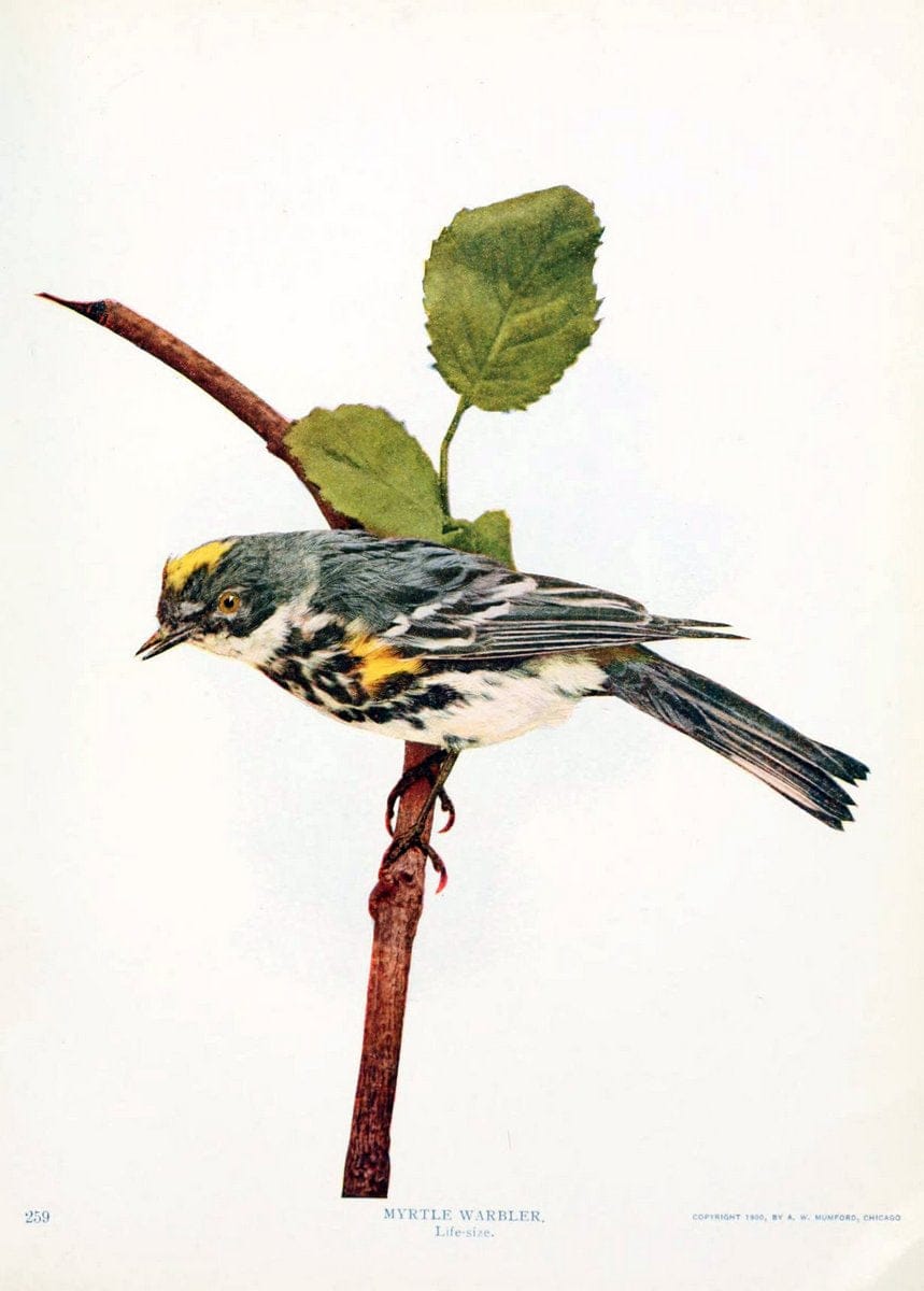 Birds and nature in natural colors. v.1.Chicago :A.W. Mumford, Publisher,1913-1914.|Birds "North America" "American Museum of Natural History Library" |taxonomy:binomial=Dendroica coronata |