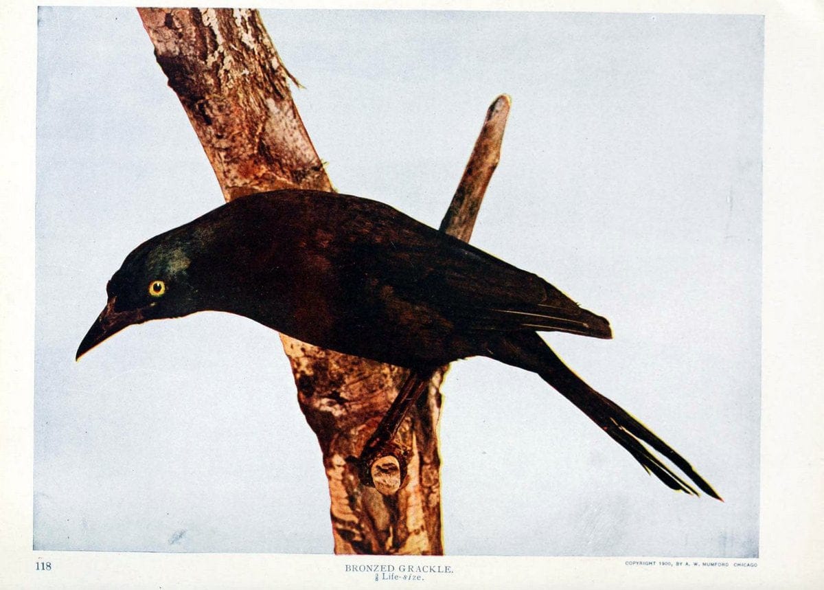 Birds and nature in natural colors. v.1.Chicago :A.W. Mumford, Publisher,1913-1914.|Birds "North America" "American Museum of Natural History Library" |taxonomy:trinomial=Quiscalus quiscula versicolor |