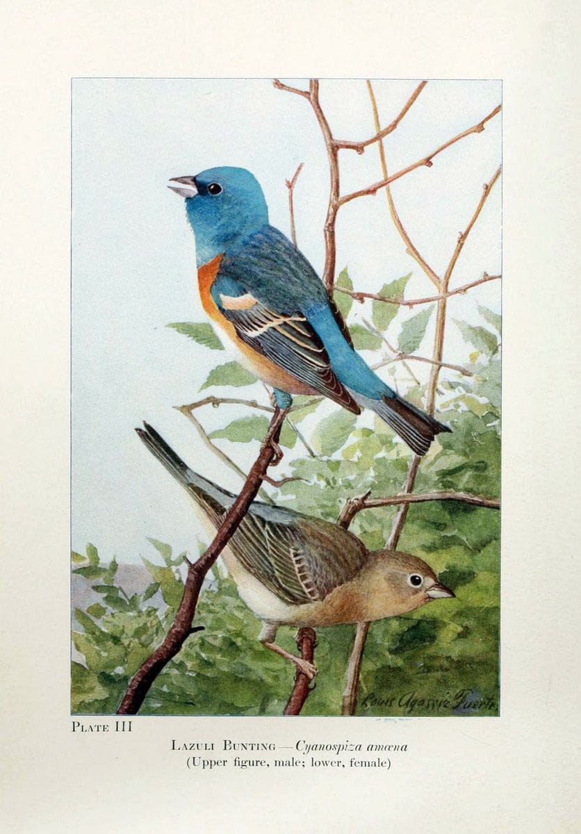 Birds of the Rockies,.Chicago,A. C. McClurg and co.,1902..||"Louis Agassiz Fuertes" songbird bunting "taxonomy:binomial=Passerina amoena" "taxonomy:common=Lazuli Bunting"