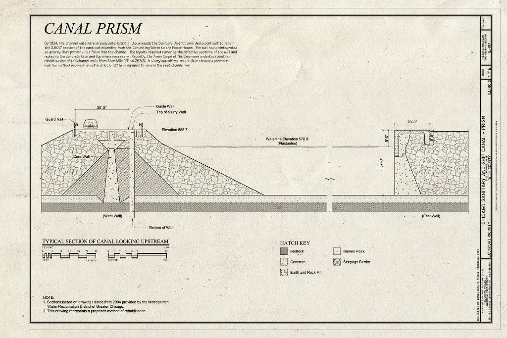 Blueprint Canal Prism - Chicago Sanitary and Ship Canal, Extends 33.9 Miles from Chicago to Lockport, Chicago, Cook County, IL