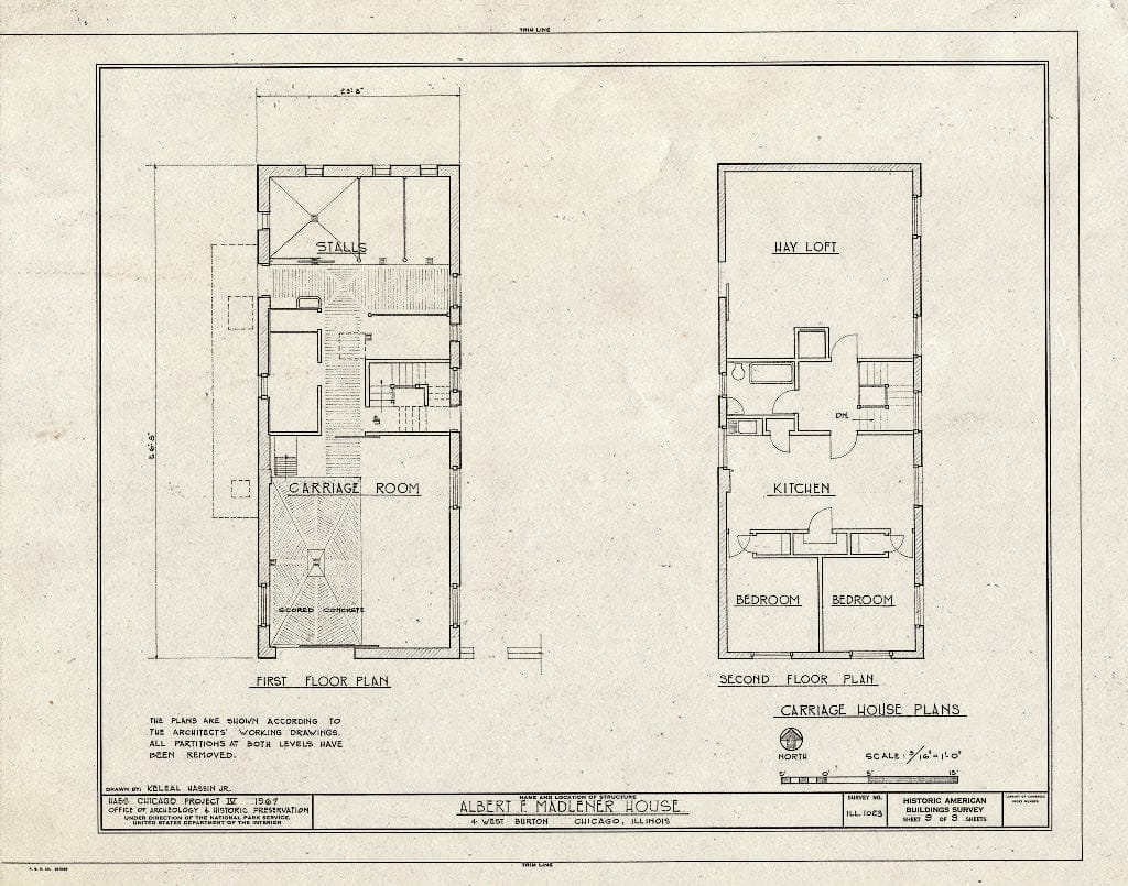 Blueprint Carriage House Floor Plans - Albert F. Madlener House, 4 West Burton Place, Chicago, Cook County, IL