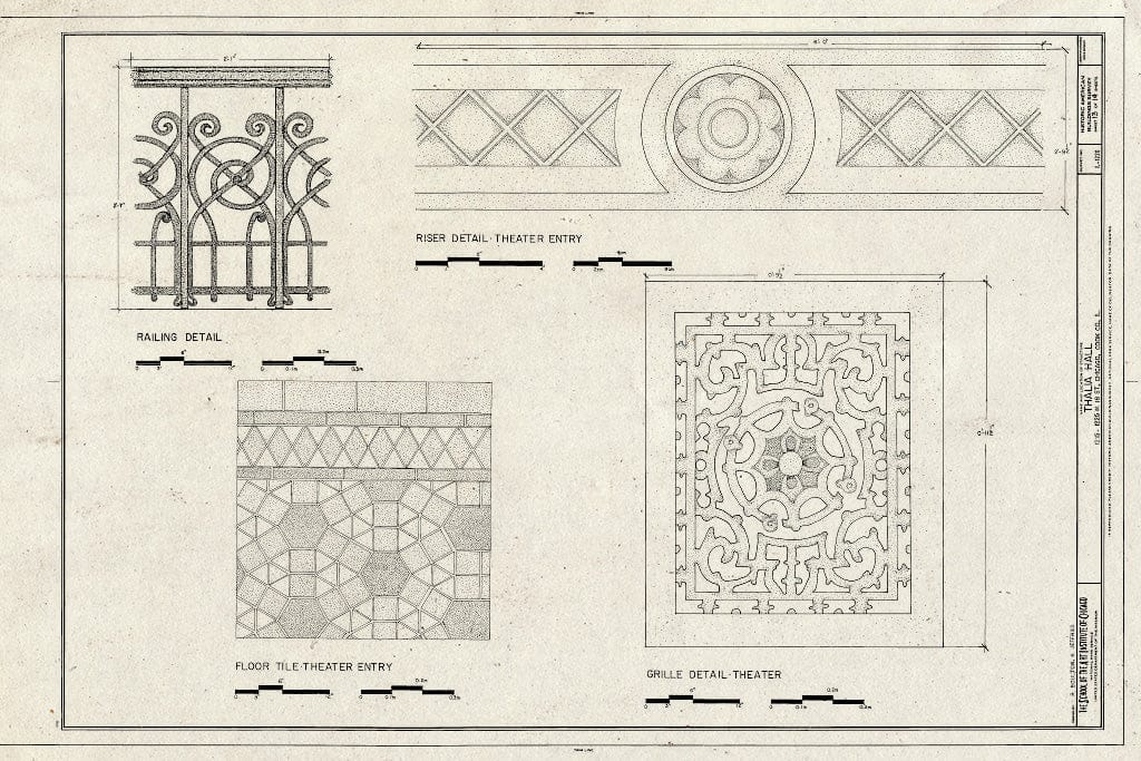 Blueprint Detail of Floor Tile, Railing, Riser & Grille - Thalia Hall, 1215-1225 West Eighteenth Street, Chicago, Cook County, IL
