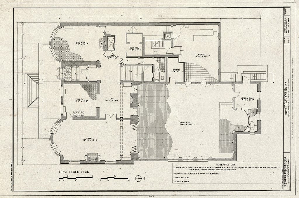 Blueprint First Floor Plan - Bryan Lathrop House, 120 East Bellevue Place, Chicago, Cook County, IL