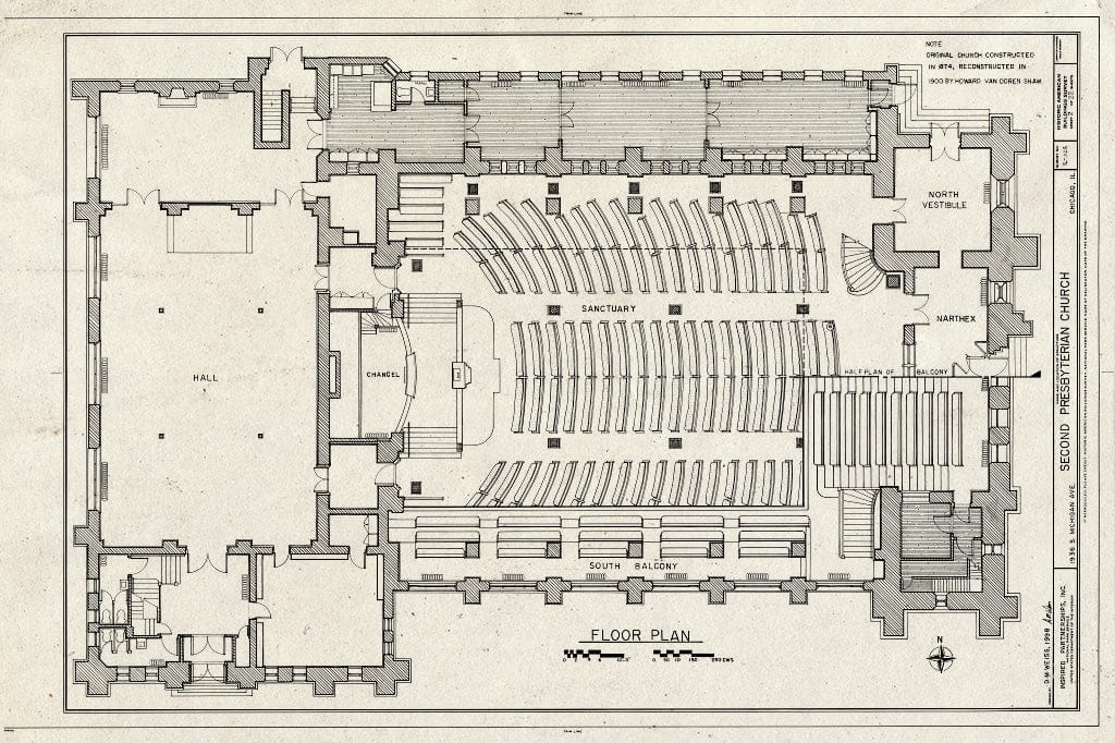 Floor Plan - Second Presbyterian Church, 1936 South Michigan Avenue, Chicago, Cook County, IL