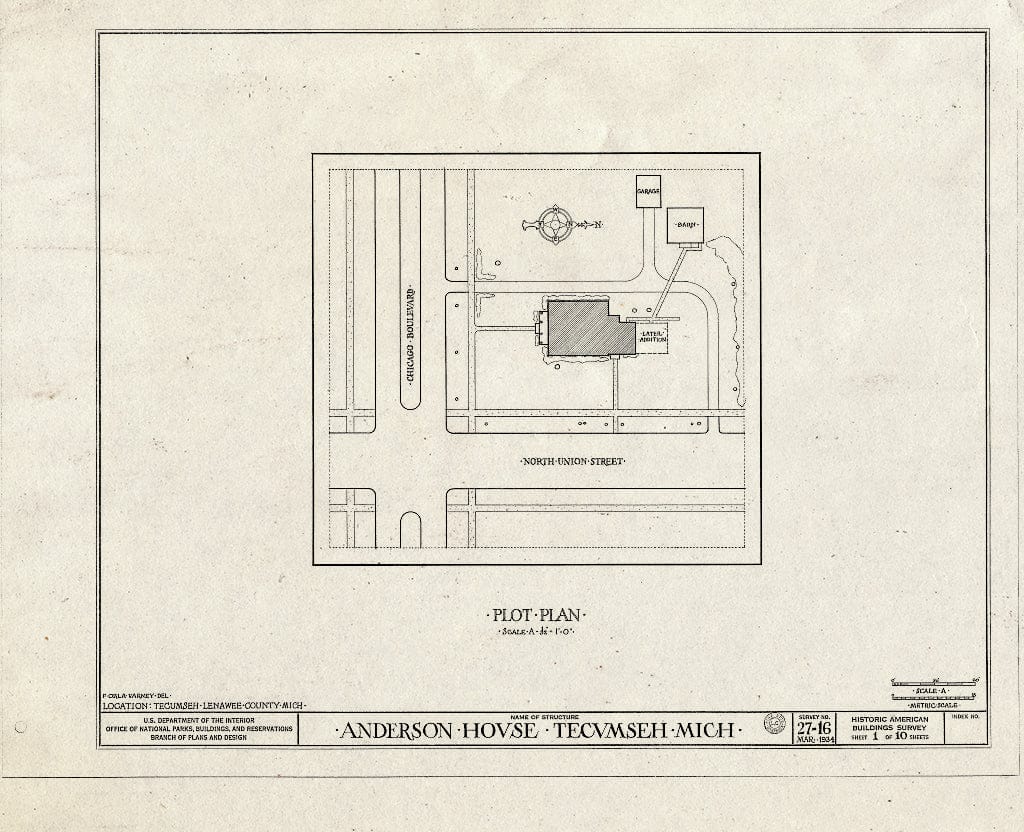 Blueprint HABS MICH,46-Tecum,1- (Sheet 2 of 10) - Elijah Anderson House, 401 Chicago Boulevard & North Union Street, Tecumseh, Lenawee County, MI