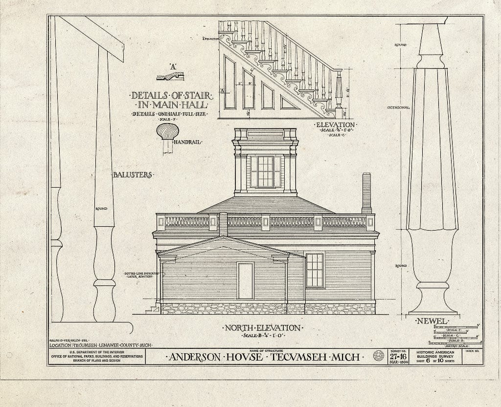 Blueprint HABS MICH,46-Tecum,1- (Sheet 6 of 10) - Elijah Anderson House, 401 Chicago Boulevard & North Union Street, Tecumseh, Lenawee County, MI