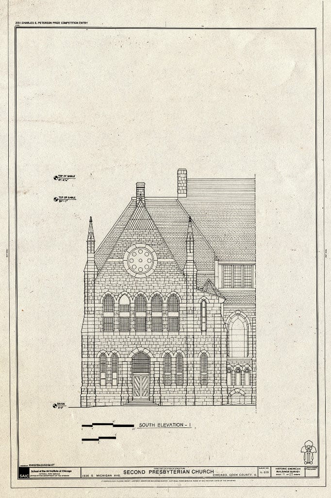 South Elevation - Second Presbyterian Church, 1936 South Michigan Avenue, Chicago, Cook County, IL