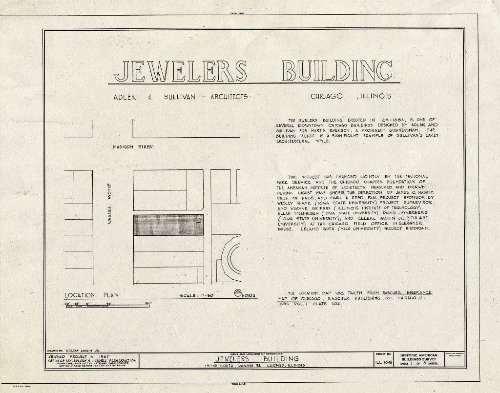 • .Blueprint Title Sheet - Jewelers' Building, 15-19 South Wabash Avenue, Chicago, Cook County, IL