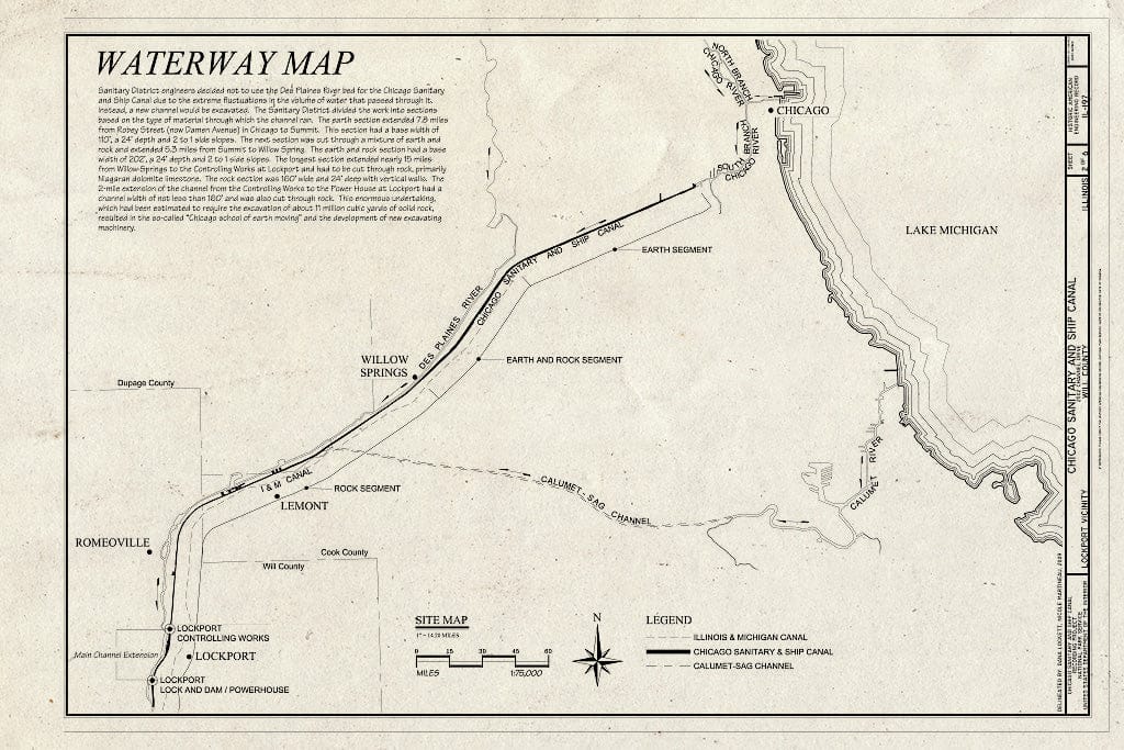 Waterway Map - Chicago Sanitary and Ship Canal, Extends 33.9 miles from Chicago to Lockport, Chicago, Cook County, IL