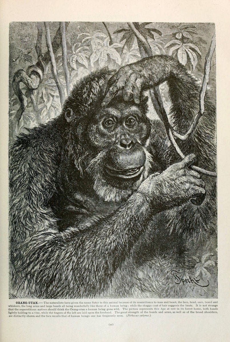 Brehm's Life of animals : Volume 1, MammaliaChicago :Marquis,1895.|"Animal behavior" Mammals "American Museum of Natural History Library" |orangutan | Bornean Orangutan | taxonomy:binomial=Pongo pygmaeus |