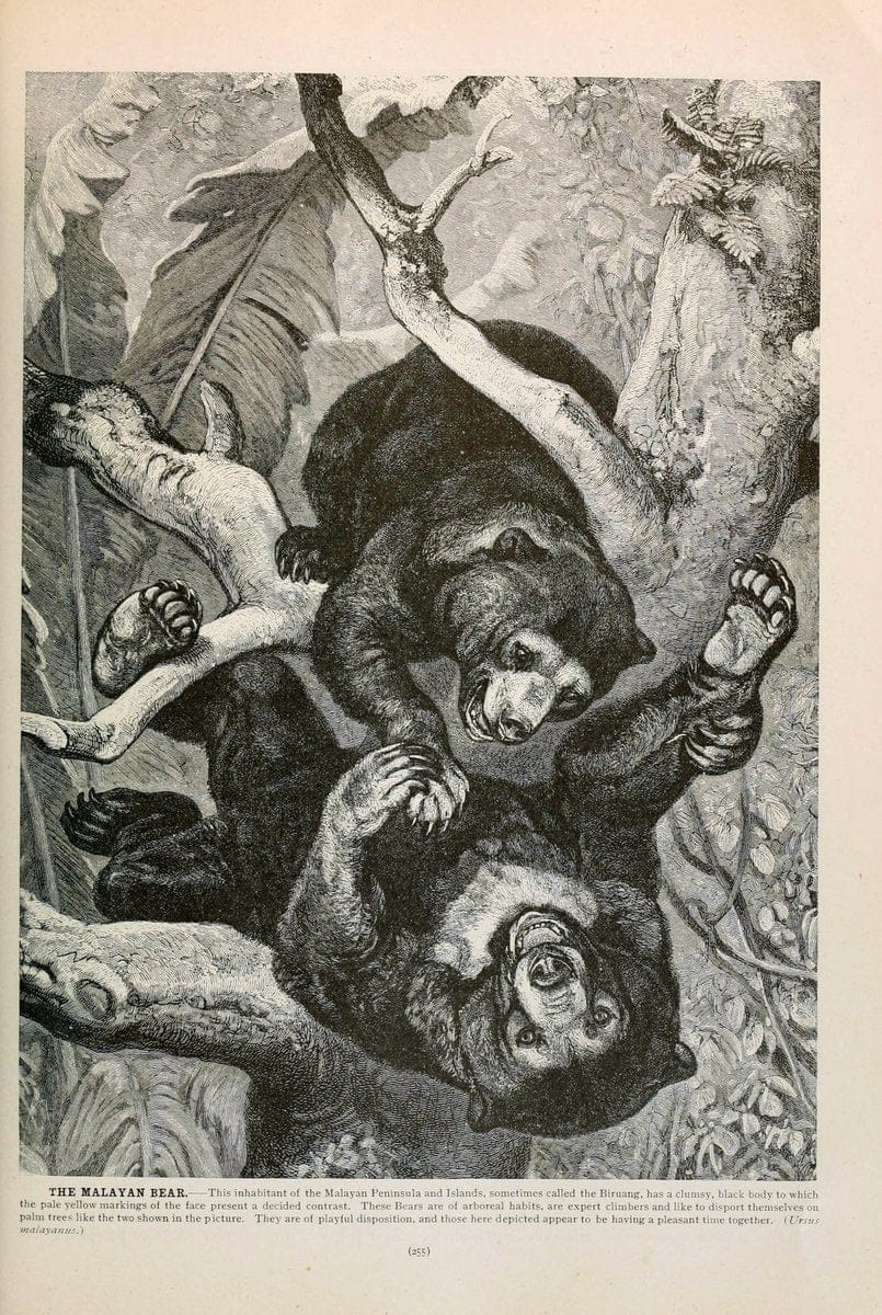 Brehm's Life of animals : Volume 1, MammaliaChicago :Marquis,1895.|"Animal behavior" Mammals "American Museum of Natural History Library" |bear | taxonomy:binomial=Helarctos malayanus | Sun Bear | Taxonomy:Family:Ursidae