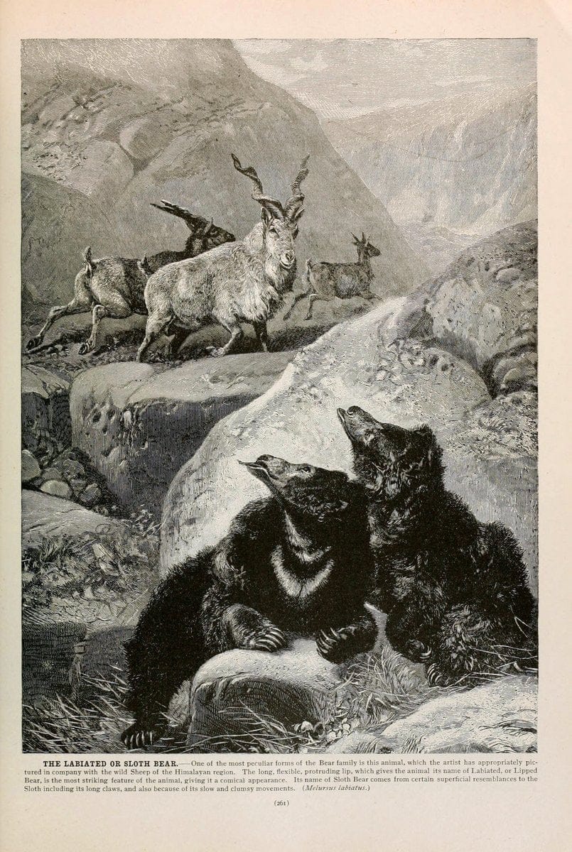 Brehm's Life of animals : Volume 1, MammaliaChicago :Marquis,1895.|"Animal behavior" Mammals "American Museum of Natural History Library" |sloth bear | taxonomy:binomial=Melursus ursinus | taxonomy:binomial=Ursus ursinus | Taxonomy:Family:Ursidae