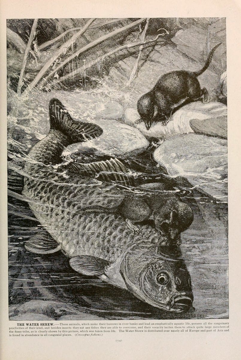 Brehm's Life of animals : Volume 1, MammaliaChicago :Marquis,1895.|"Animal behavior" Mammals "American Museum of Natural History Library" |shrew fish | taxonomy:binomial=Neomys fodiens | Water Shrew |