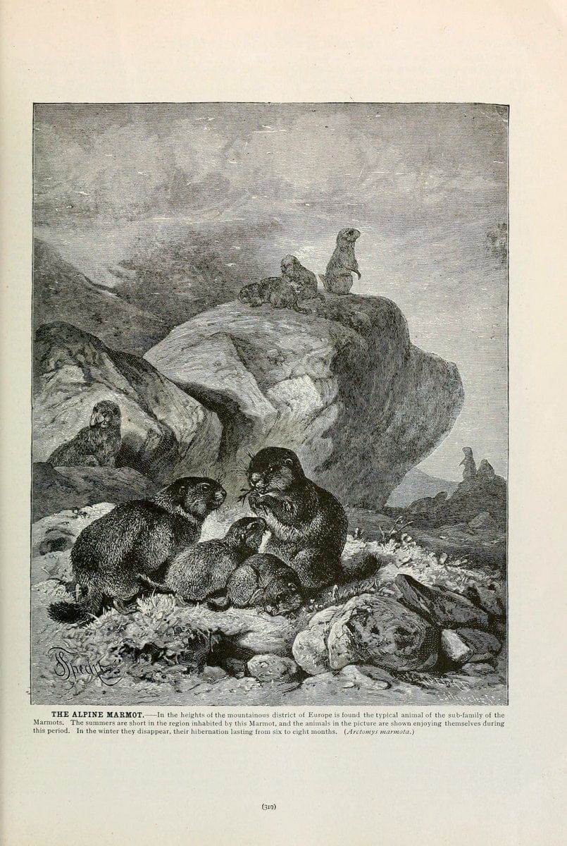 Brehm's Life of animals : Volume 1, MammaliaChicago :Marquis,1895.|"Animal behavior" Mammals "American Museum of Natural History Library" |marmot | taxonomy:binomial=Marmota marmota | Alpine Marmot |