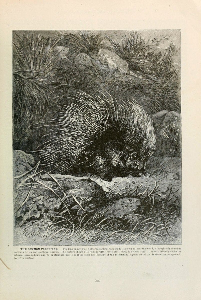 Brehm's Life of animals : Volume 1, MammaliaChicago :Marquis,1895.|"Animal behavior" Mammals "American Museum of Natural History Library" |porcupine | taxonomy:binomial=Hystrix cristata | Crested Porcupine |