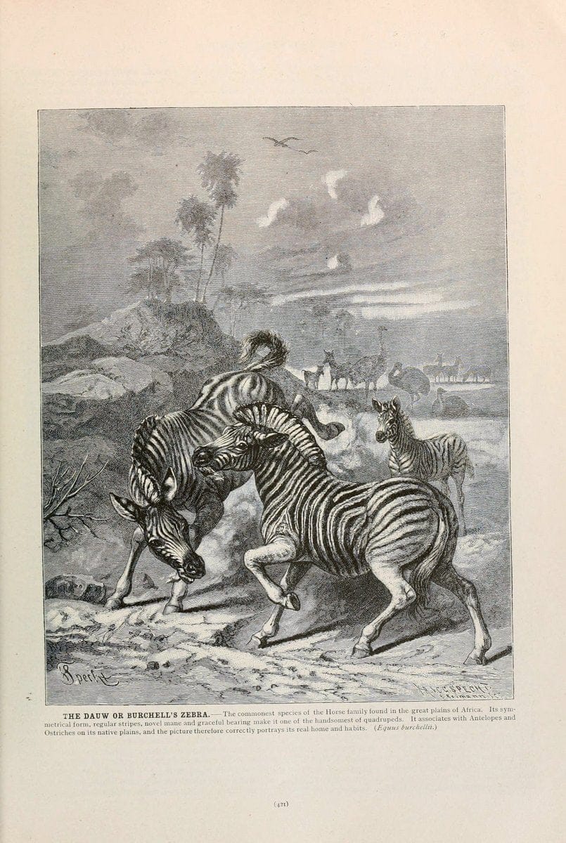 Brehm's Life of animals : Volume 1, MammaliaChicago :Marquis,1895. | "Animal behavior" Mammals "taxonomy:genus=Equus quagga burchellii" | Vintage Print Reproduction 463293