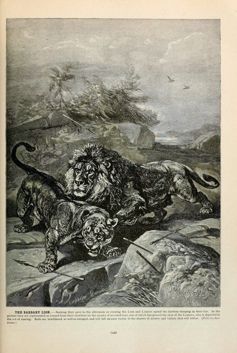 Brehm's Life of animals : Volume 1, MammaliaChicago :Marquis,1895.|"Animal behavior" Mammals "American Museum of Natural History Library" |lion | taxonomy:binomial=Panthera leo leo | Barbary Lion |