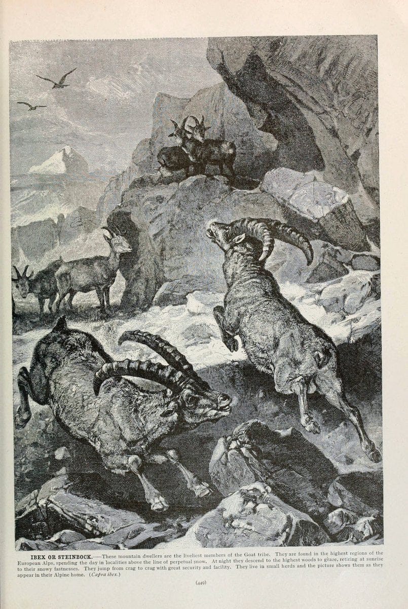 Brehm's Life of animals : Volume 1, MammaliaChicago :Marquis,1895.|"Animal behavior" Mammals "American Museum of Natural History Library" |ibex steinbock sheep | taxonomy:binomial=Capra ibex | Alpine Ibex |