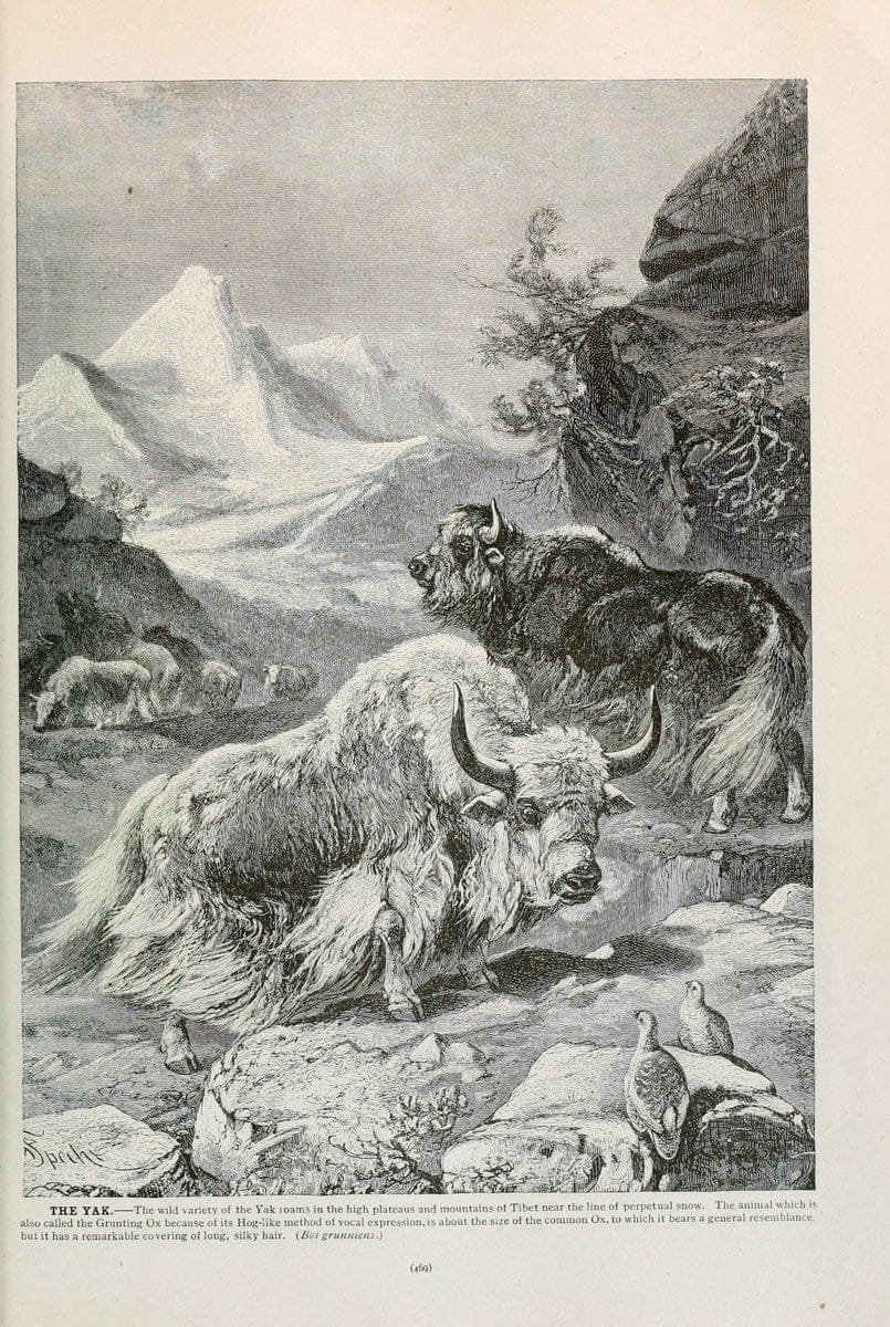 Brehm's Life of animals : Volume 1, MammaliaChicago :Marquis,1895.|"Animal behavior" Mammals "American Museum of Natural History Library" |yak | taxonomy:binomial=Bos mutus | Wild Yak |