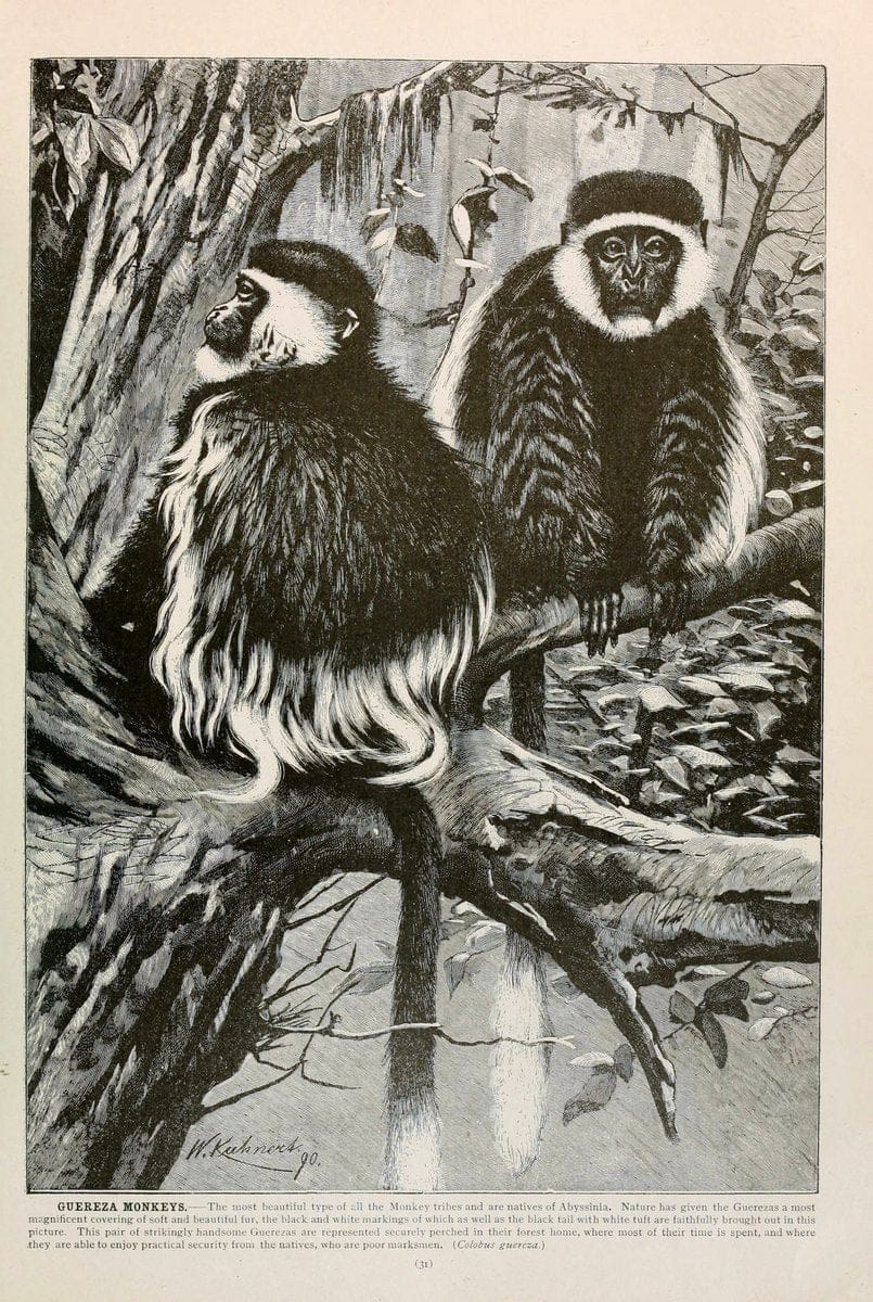 Brehm's Life of animals : Volume 1, MammaliaChicago :Marquis,1895.|"Animal behavior" Mammals "American Museum of Natural History Library" |monkey | taxonomy:binomial=Colobus guereza | Black-and-white Colobus |