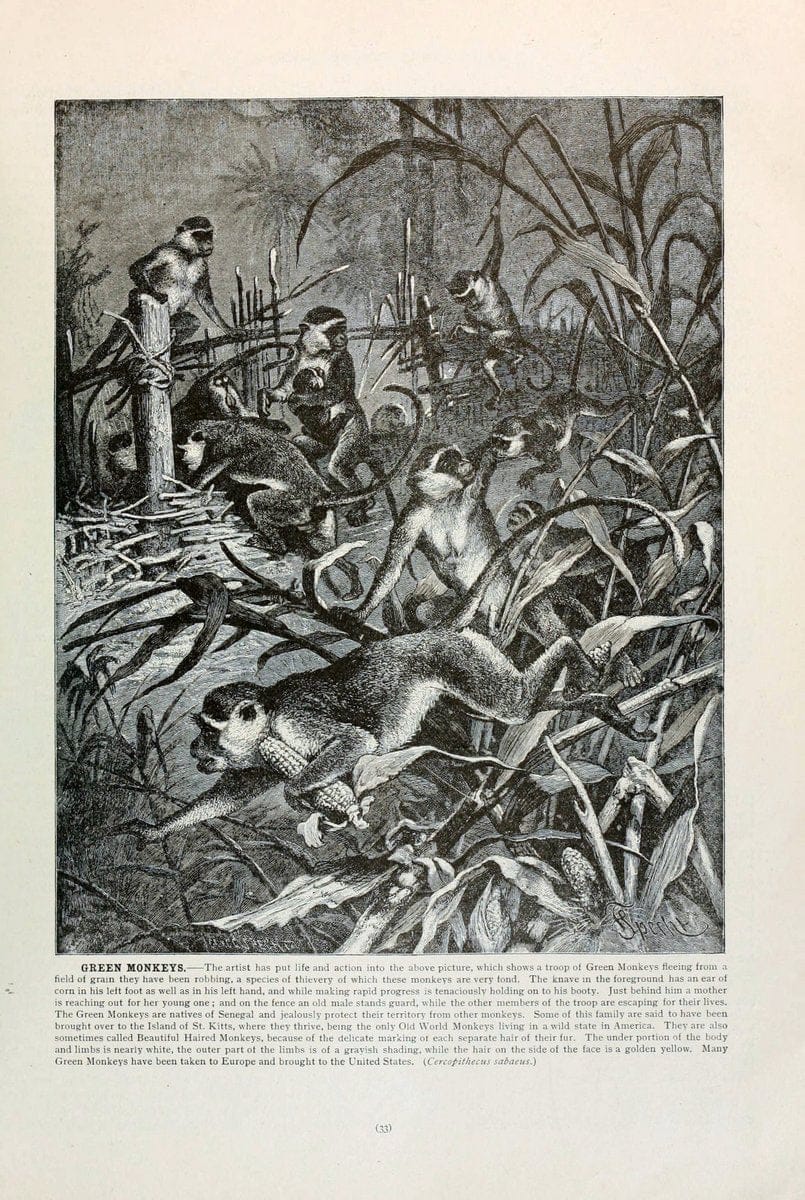 Brehm's Life of animals : Volume 1, MammaliaChicago :Marquis,1895.|"Animal behavior" Mammals "American Museum of Natural History Library" |monkey | taxonomy:binomial=Chlorocebus sabaeus | Green Monkey | Callithrix Monkey |